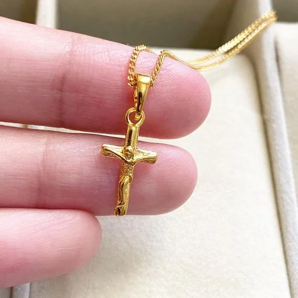 Our Jesus Cross Necklace is the perfect religious accessory. Perfect for everyday wear; pair it with your favorite outfit! Layer with other necklaces, or it by itself for a chic look. All necklaces come beautifully packaged in a gift box which is perfect for gift giving. Featuring a durable clasp to keep your 18k gold necklace secure.
