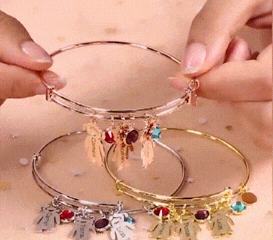 Let us engrave your loved one's names on this bangle bracelet. Each bracelet can be ordered with multiple personalized boy/girl charms and 1 to 5 birthstones according to your choice. Since you can get as many charms as you need, this bracelet make an ideal gift for mothers, grandmothers and children alike! Select up to birthstones and engravings to make this bracelet special and meaningful.