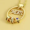♥ Beautifully crafted to order, this slim, circular pendant is adorned with one to 10 round beads, each customized with the word of your choice.Our craftsmen make this special work became complete by adding a family tree and birthstone